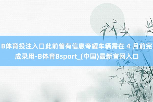 B体育投注入口此前曾有信息夸耀车辆需在 4 月前完成录用-B体育Bsport_(中国)最新官网入口
