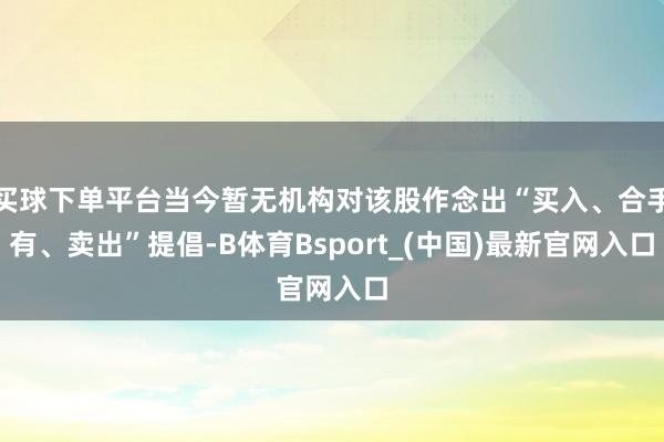 买球下单平台当今暂无机构对该股作念出“买入、合手有、卖出”提倡-B体育Bsport_(中国)最新官网入口