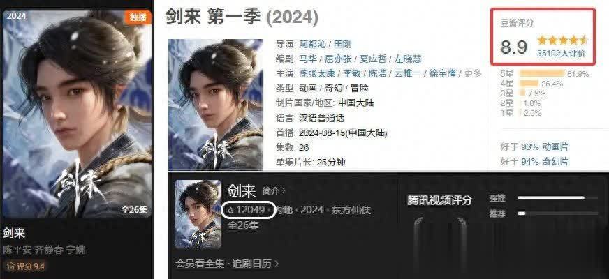 咱们从豆瓣以及腾讯视频的数据不错看出,评分上两者不相高下。《剑来》1.2万的热度,443万的点评;对比《仙逆》1.7万的热度,近千万的点评。两者在热度与用户计划上两者收支精深,这也就找到了为什么评分高,热度低的起源啦!咱们深挖批驳,得出以下几点论断