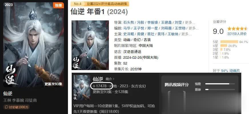 《剑来》和《仙逆》当作腾讯视频上两部改编自网文的动画,在叙事逻辑、制作战略和阛阓发达上的各异,《剑来》豆瓣评分高达8.9分,深度高制作精良,却碰到阛阓冷。而反不雅《仙逆》从第一季运转8.1的评分到年番9.0,腾讯计划东说念主数跨越1000万,为何会形成《剑来》口碑高却不火,《仙逆》却一说念饱经风雨顶风翻盘的原因?